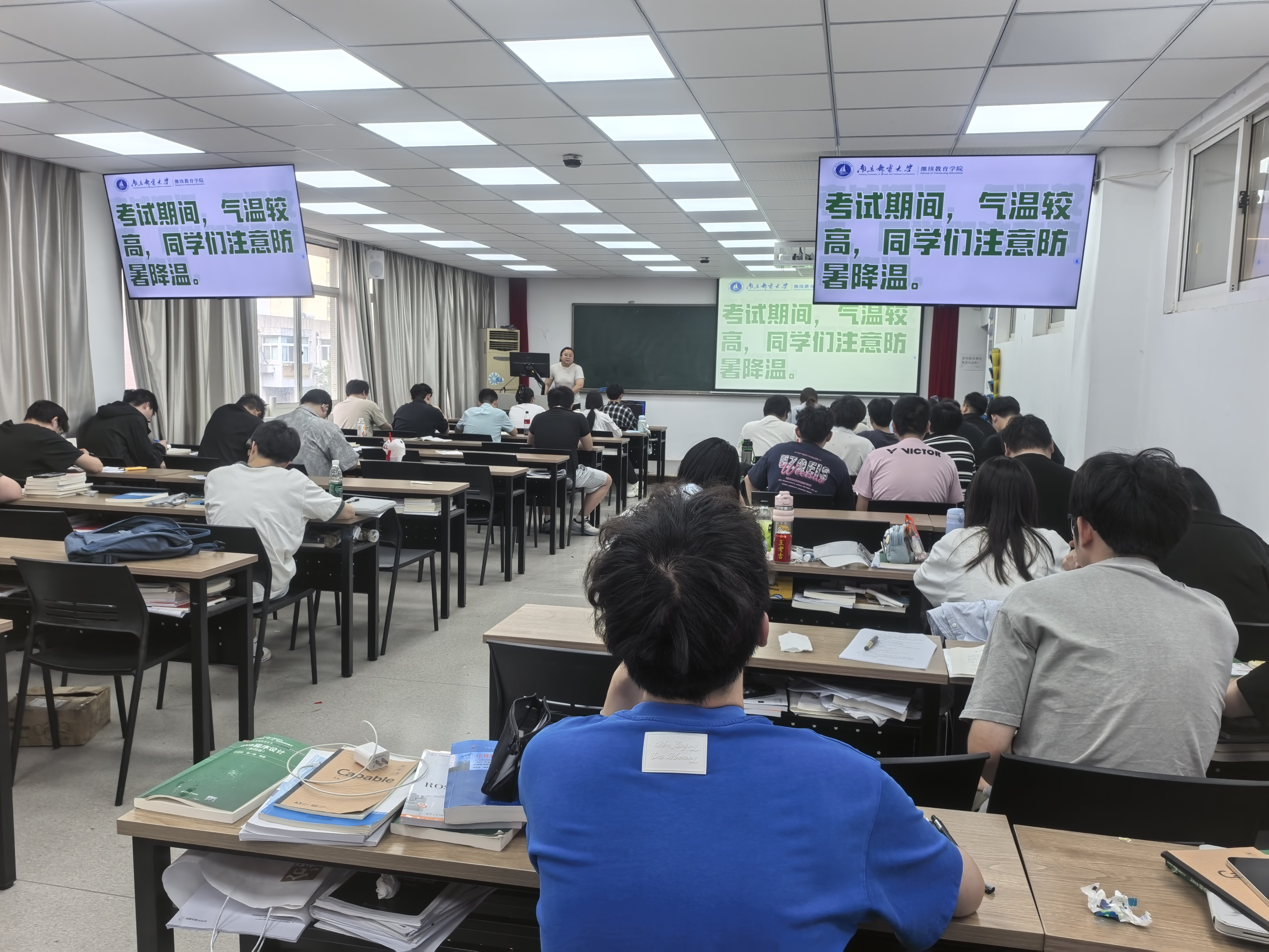 同时,学管部贴心提醒同学们提前准备好准考证、身份证、文具等考试必备物品,避免因遗漏影响考试状态。针对近期高温天气,特别提醒同学们要注意防暑降温,建议同学们携带饮用水、穿着透气衣物,合理安排作息时间,确保以沉着冷静的良好心态迎接期末考试。